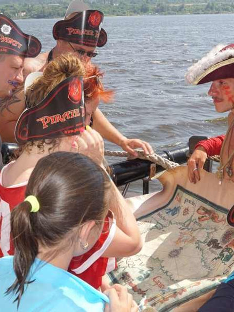 На борда децата са посрещнати от капитана на кораба. Сценарият на анимационната програма въвлича туристите в атмосферата на средновековно морско приключение.